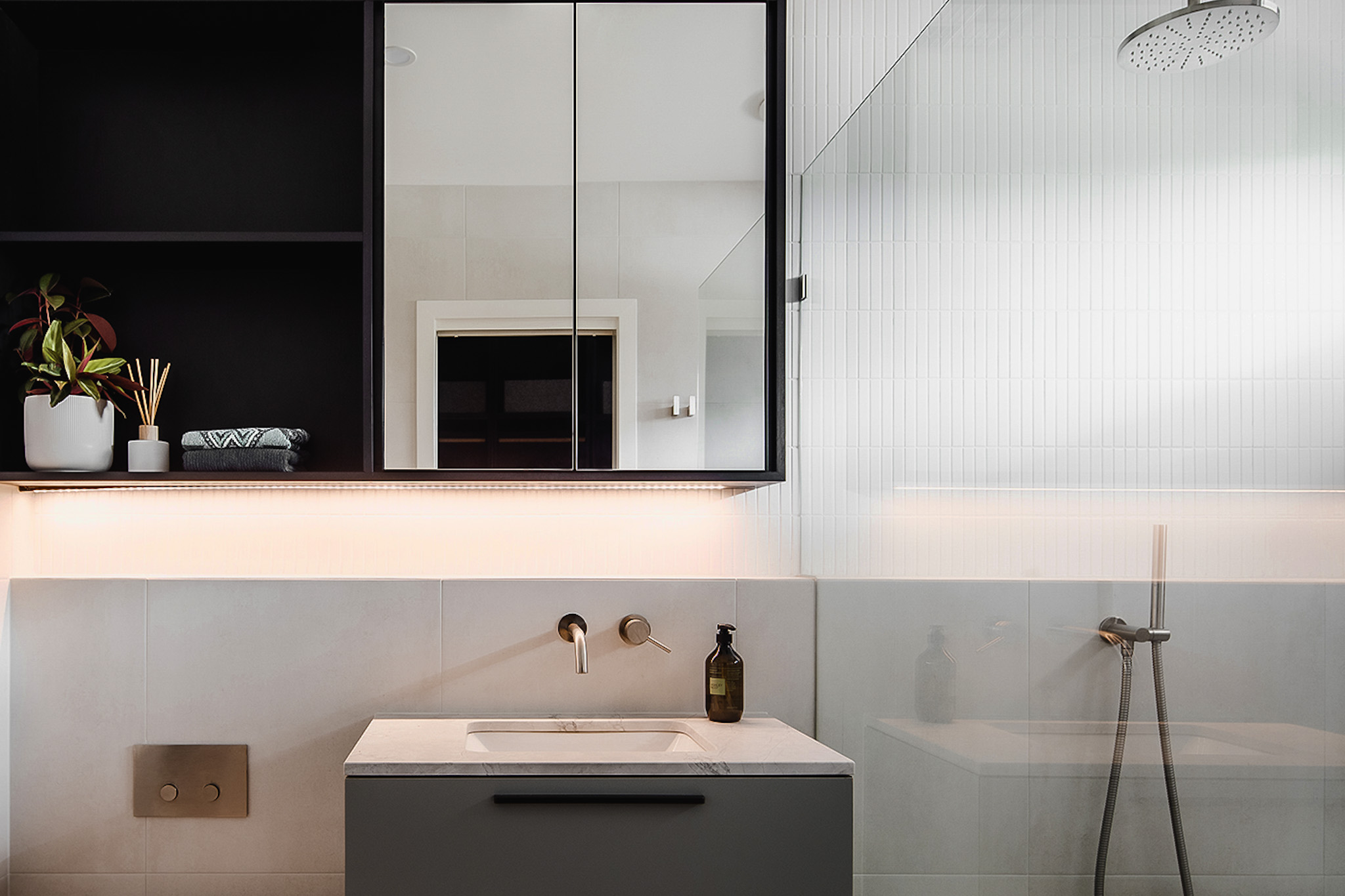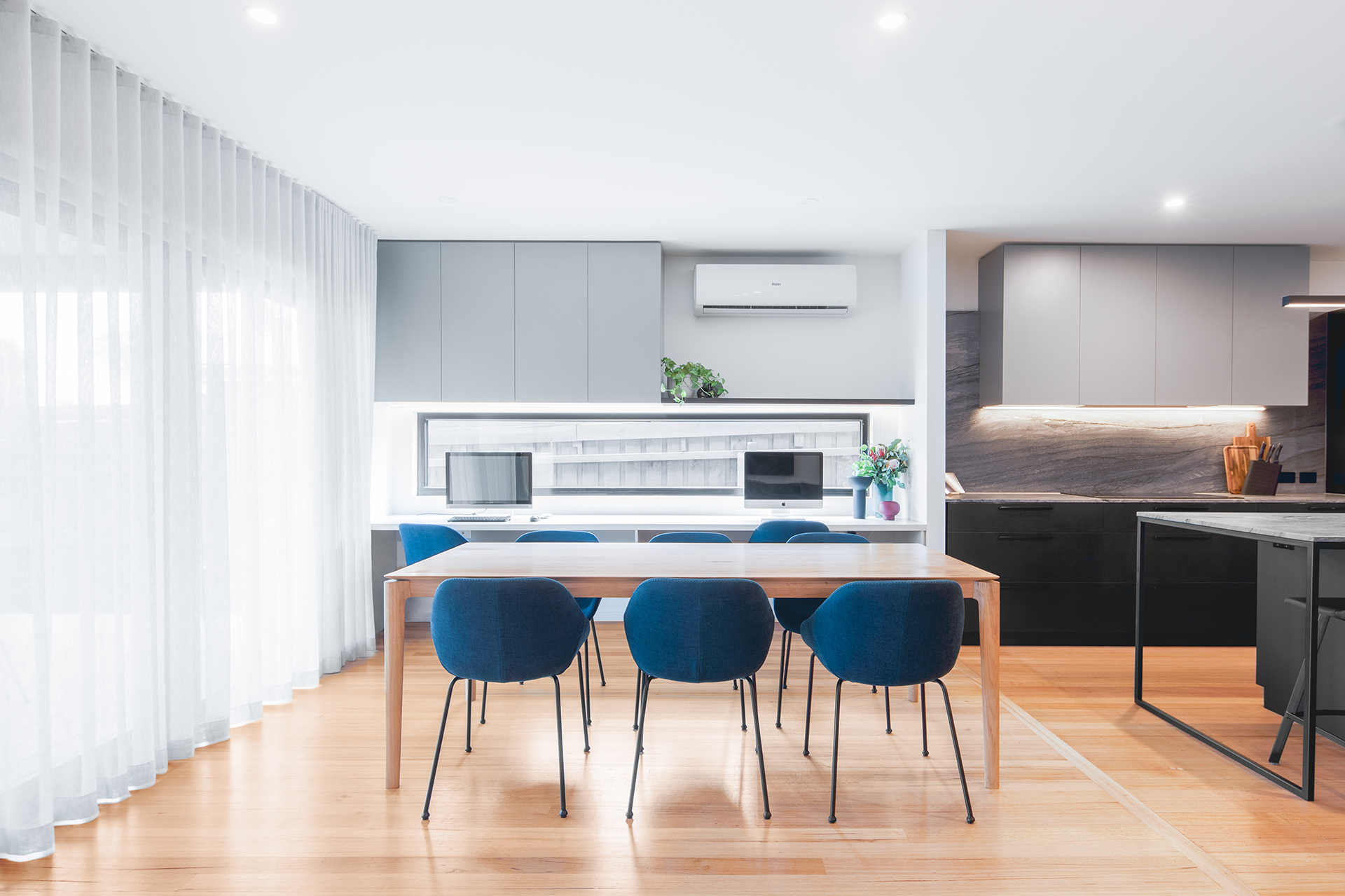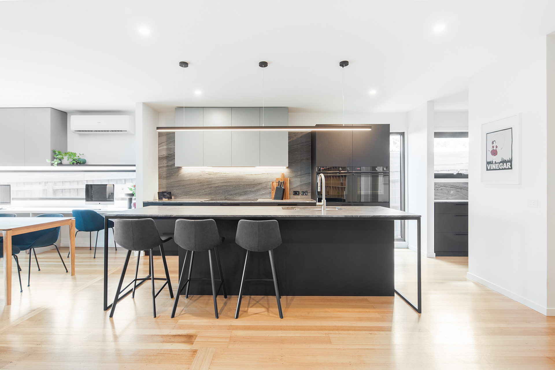 The brief within this project was to create an extension of the existing 1960s home to accomodate a larger open plan living area in addition to master bedroom retreat. The clients also wanted to create a social kitchen where they could entertain with friends and enjoy cooking with their young family whilst also delivering an aesthetic that reflected their personality.